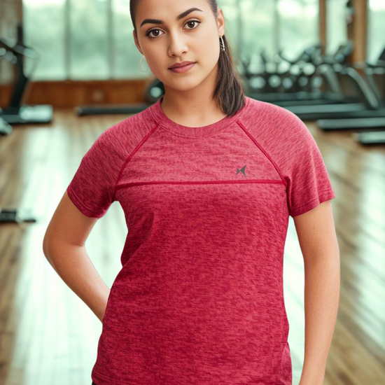 Cloudflex Ultrasoft Round Neck T-Shirt, Women, Color: Ignite Red Melange